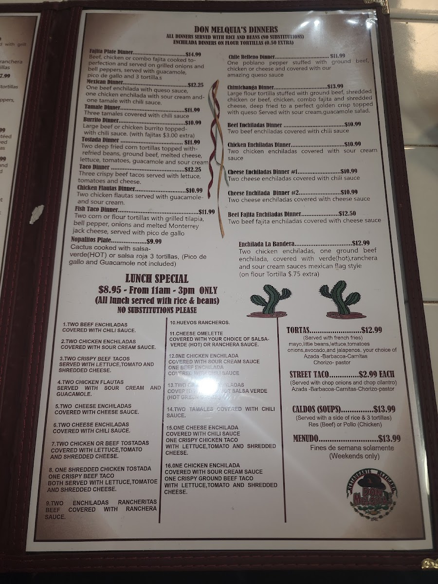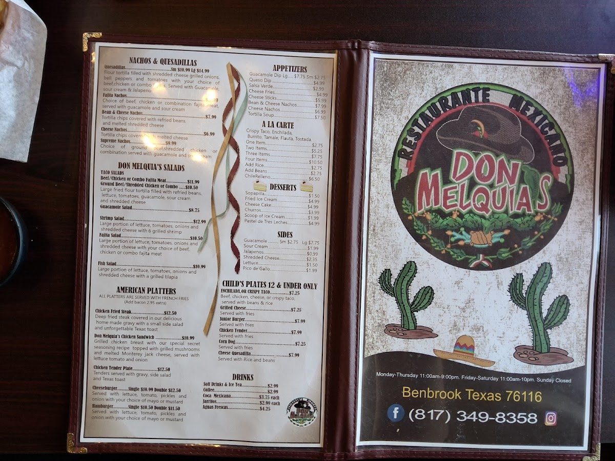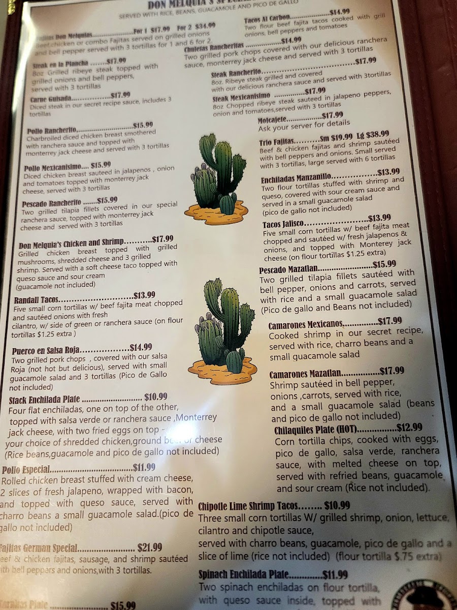 You’ll find the Don Melquias Restaurante Mexicano Menu full of dishes that feel comforting right from the first glance, and even more so once they hit the table. Tucked over on 5051 Benbrook Blvd in Benbrook, this spot leans into bold flavors without making things complicated. As you look through the options, you’ll notice familiar classics alongside a few plates that feel like hidden gems, all prepared with that warm, home-style touch people come back for.